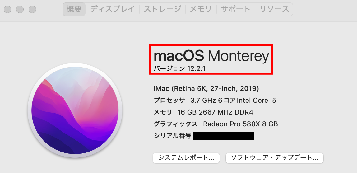 こちらをクリックし、バージョンをご確認ください。