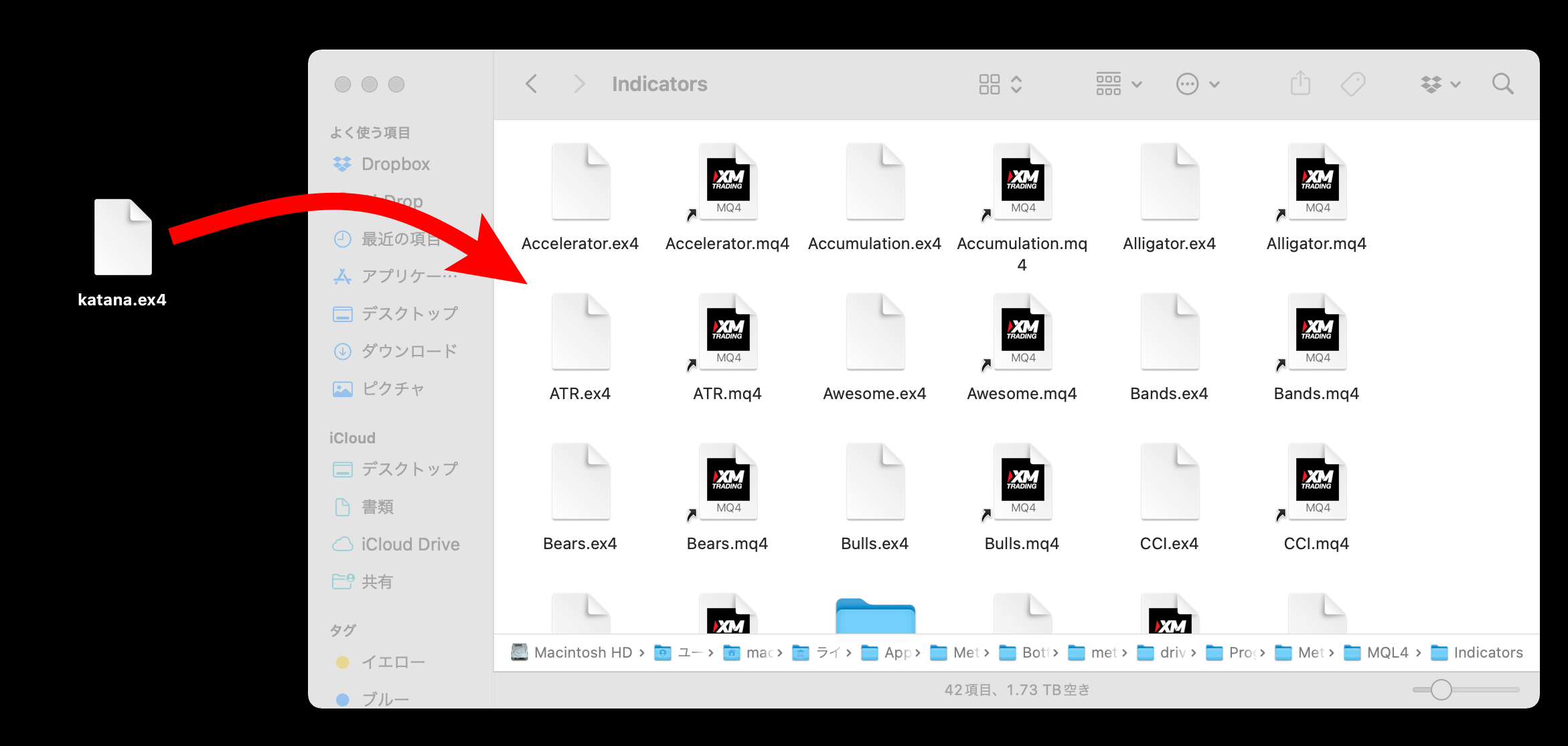 それでは、MacのMT4(MetaTrader4)に「Katana」を導入する流れを解説します。