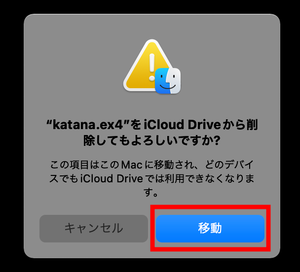 その際にこのような表示が出ますので、「移動」をクリックします。
